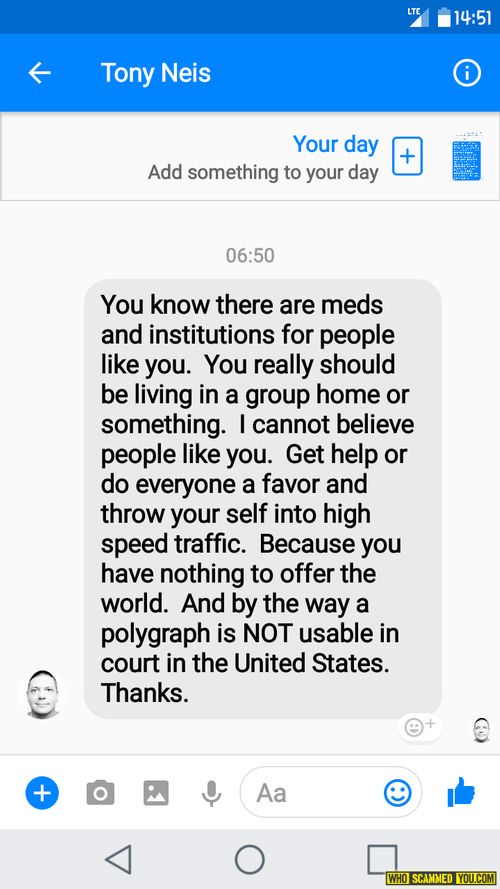 Call and report your bully story. Do not be afraid. Call and tell us who when and where.